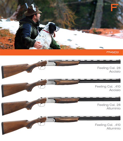 I sovrapposti Feeling in cal. 28 e 410 in versione acciaio e alluminio vengono ideati e progettati per questo scopo : piccoli, snelli e leggeri, dalla linea giovane, moderna ed essenziale, ma allo stesso tempo robusti e veloci, possiedono un brandeggio perfetto. Emozionano perché divertenti e stimolanti, emozionano perché creano un legame unico con il cacciatore e il suo compagno di caccia….Feeling appunto!